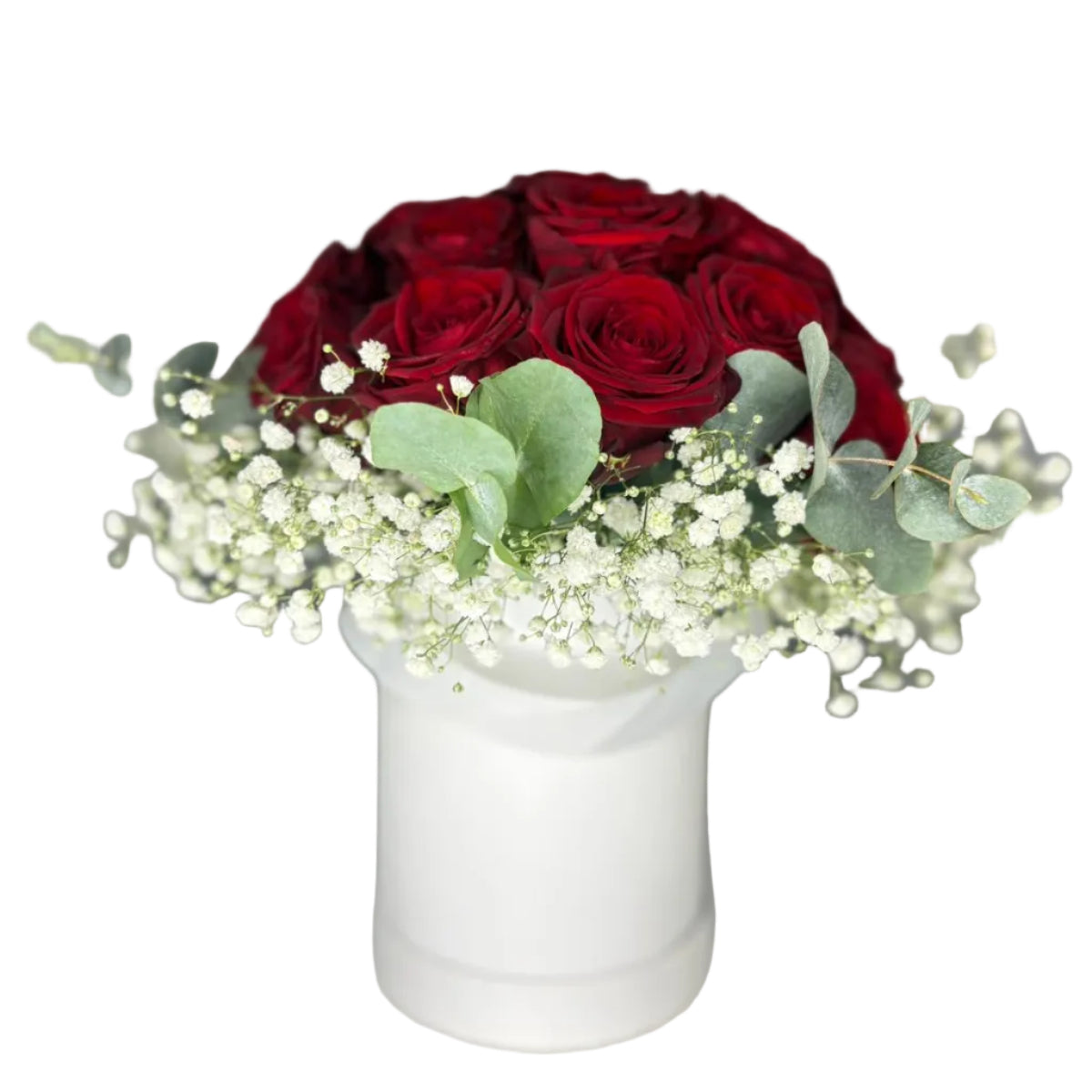 Exprimez vos sentiments les plus intenses avec cette boîte florale composée de 21 roses rouges fraîches, symbole intemporel de l’amour et de la passion. Délicatement accompagnées de gypsophile blanc, elles offrent un contraste raffiné et une touche de légèreté qui sublime l’ensemble.