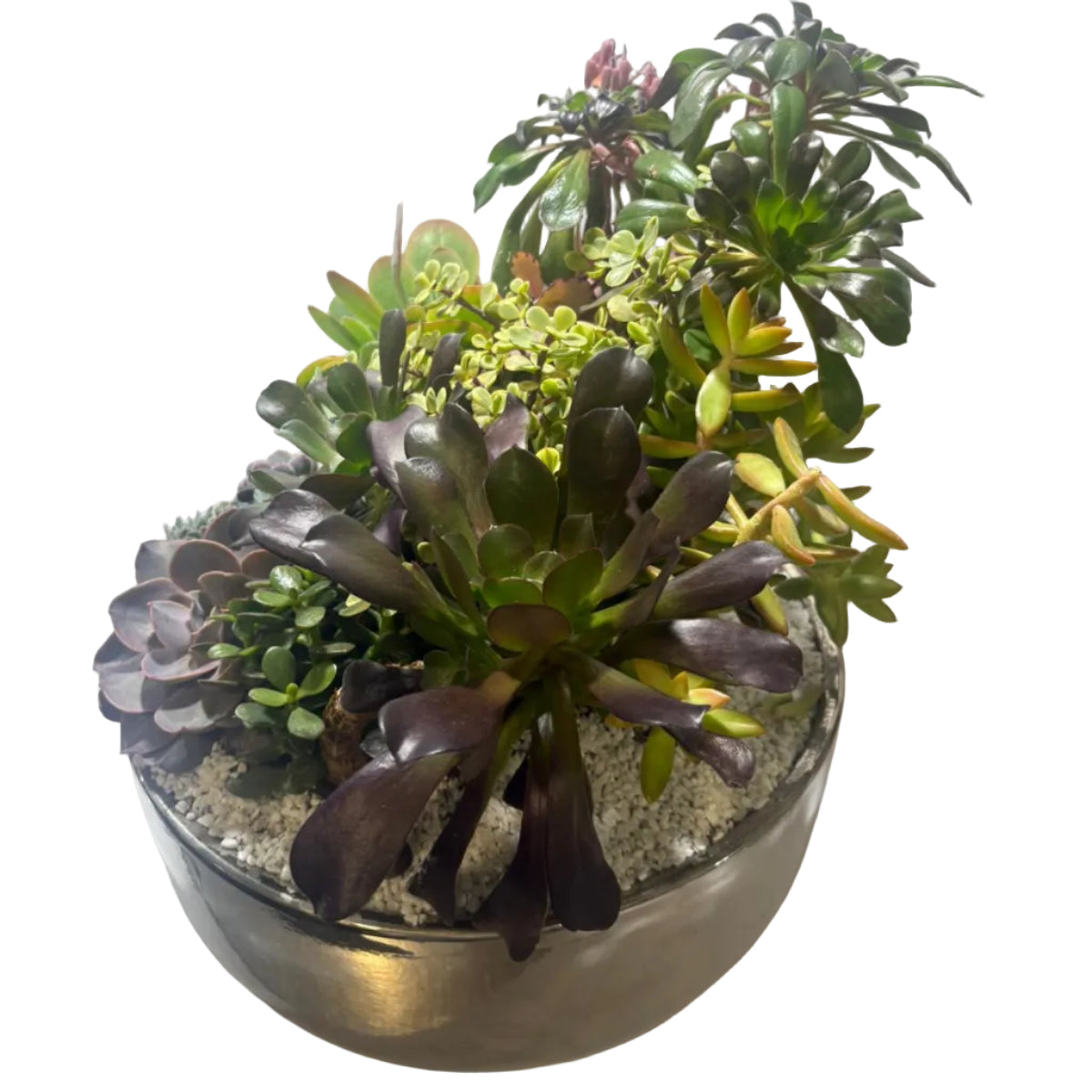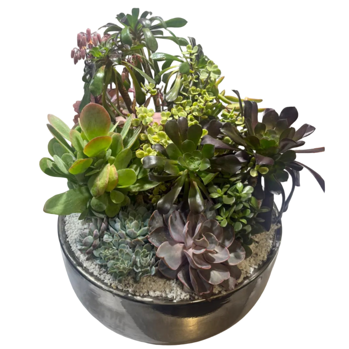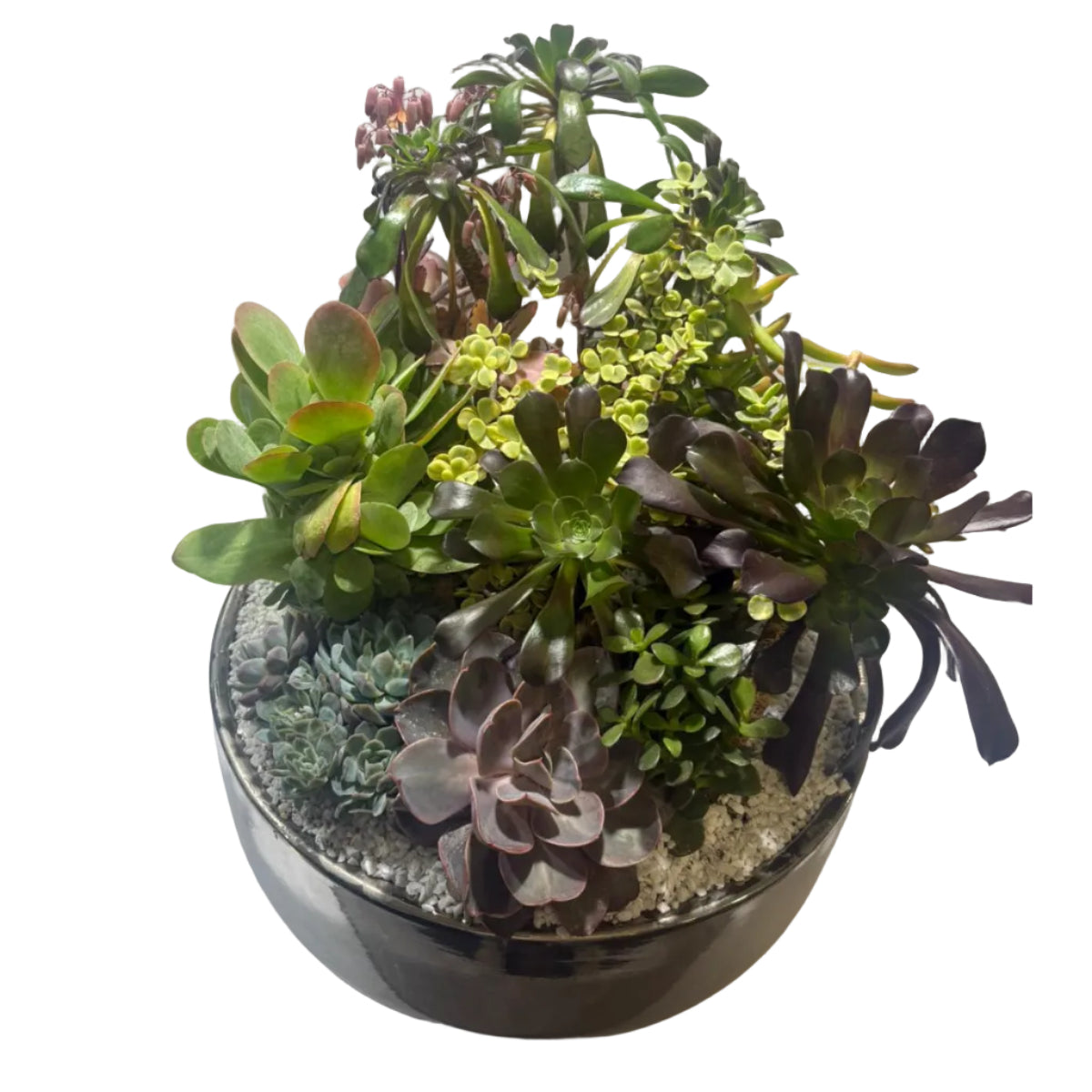 Véritable pièce maîtresse, ce grand jardin japonais en large coupe en céramique est une création végétale d’exception. Sa surface généreuse permet une composition riche et équilibrée de succulentes graphiques, évoquant les paysages minéraux et végétaux des jardins japonais traditionnels.