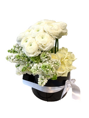 Cette Flower Box contient un mixte de fleurs blanches.